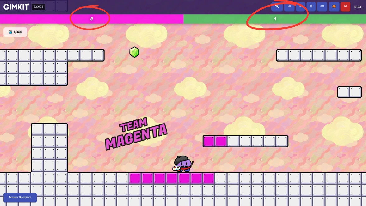 When the game starts, players are split into two teams, Magenta and Green. Answer questions to gain energy, allowing you to move and claim tiles for your team.